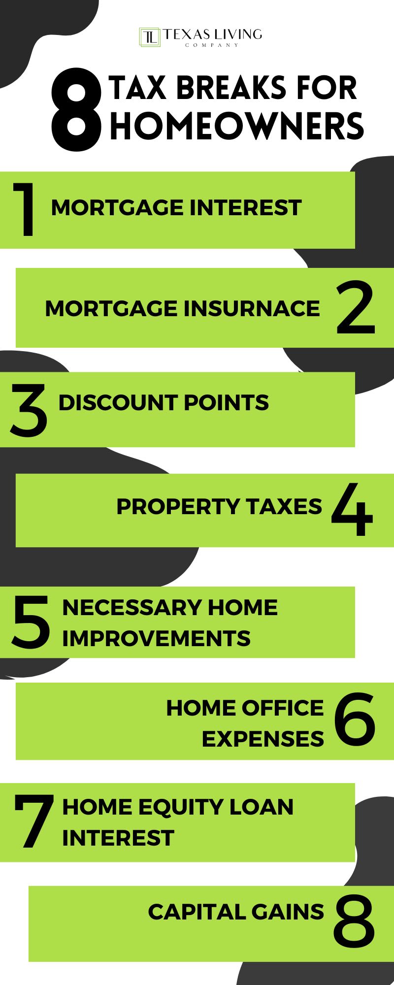 Note: “Loan Origination Points” are not tax deductible because these are fees that don’t affect the actual interest rate of your loan.